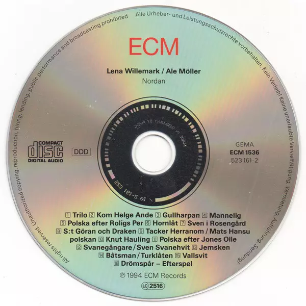 Lena Willemark: Nordan versión en CD en estándar edición. Esta edición en concreto se lanzó en Alemania en la editorial ECM Records el día 22. agosto 2007. Álbum abarca todos los géneros Folk, World, & Country, Jazz, Folk, Contemporary Jazz y Nordic.