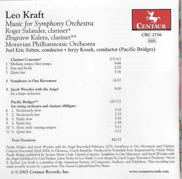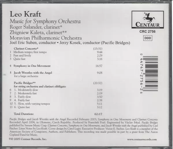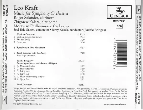 | Título | Clarinet Concerto • Symphony In One Movement • Jacob Wrestles With The Angel • Pacific Bridges |