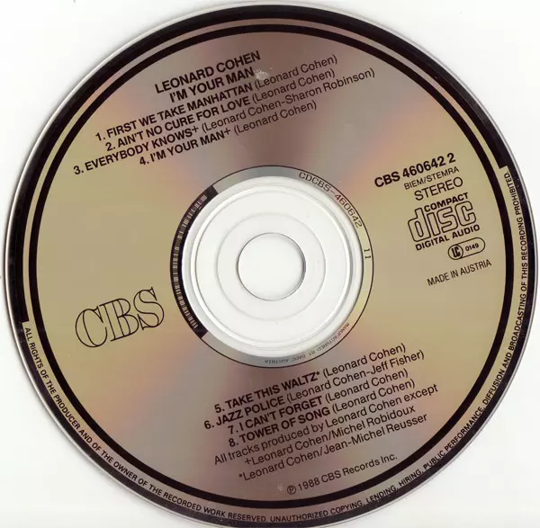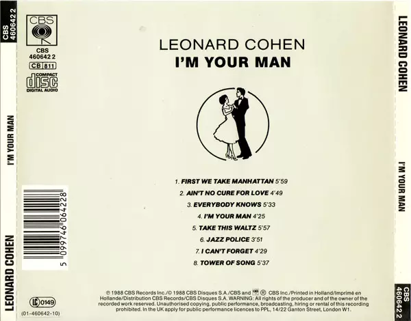 Leonard Cohen: I'm Your Man versión en CD en estándar edición. Esta edición en concreto se lanzó en Europa en la editorial CBS el día 26. junio 2006.