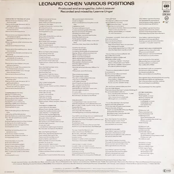 | Artista | Leonard Cohen |