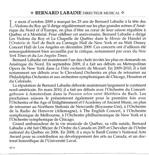 | Artista | Les Violons du Roy | Bernard Labadie |