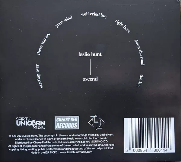 Leslie Hunt: Ascend versión en CD en estándar edición. Esta edición en concreto se lanzó en Europa, Reino Unido y EE.UU. en la editorial Spirit Of Unicorn Music el día 2. julio 2021. Álbum abarca todos los géneros Rock y Pop.