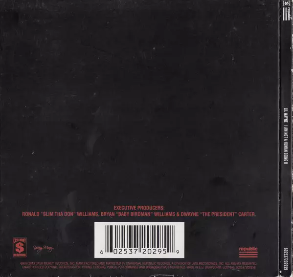Lil Wayne: I Am Not A Human Being II DLX | LTD versión en CD en deluxe de edición limitada edición. Esta edición en concreto se lanzó en Europa en la editorial Cash Money Records en colaboración con Republic Records y Young Money Entertainment el día 24. marzo 2023. Álbum puede clasificarse como género Hip Hop. Limited Deluxe Edition.