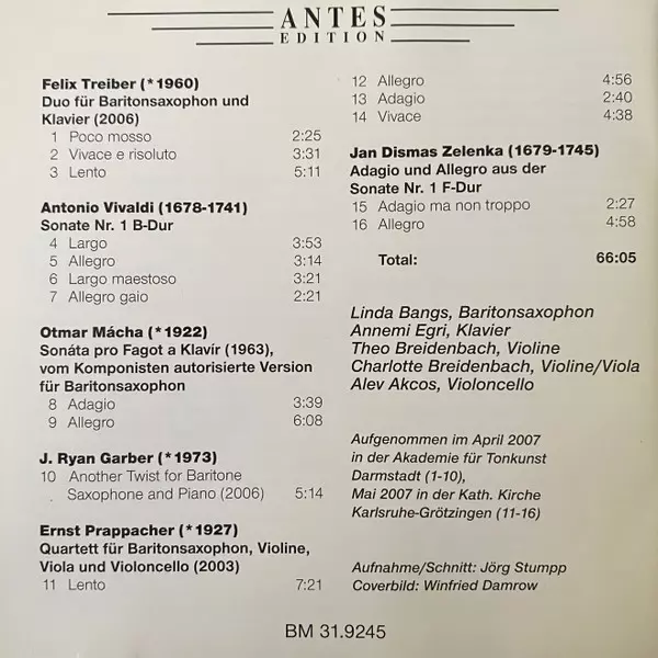 Felix Treiber: Duo Für Baritonsaxophon Und Klavier (2006) | |||