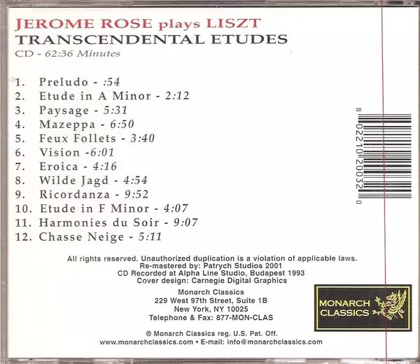 | Artista | Franz Liszt | Jerome Rose |