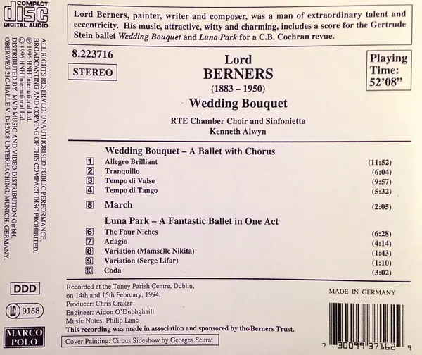 | Artista | Lord Berners | RTE Sinfonietta | Kenneth Alwyn | RTE Chamber Choir |