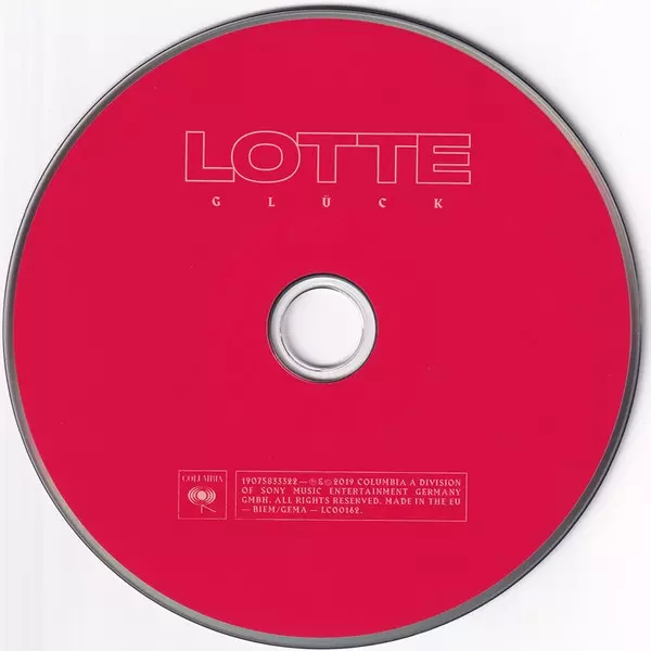 Lotte: Glück versión en CD en estándar edición. Esta edición en concreto se lanzó en Alemania, Austria y Suiza en la editorial Columbia el día 18. octubre 2019. Álbum puede clasificarse como género Pop.