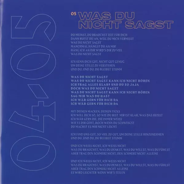 Acoustic Guitar, Electric Guitar, Percussion, Keyboards, Programmed By Jens Schneider (4) | Drums, Percussion, Bass, Keyboards, Programmed By Jules Kalmbacher | Producer Jens Schneider (4), Jules Kalmbacher | Recorded By Jens Schneider (4) | Vocals Lotte (8), Max Giesinger | Written-By Jens Schneider (4), Lotte (8), Max Giesinger
