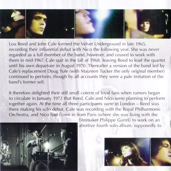 | Artista | Nico | Lou Reed | John Cale |