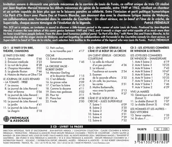 Louis De Funès: Anthologie 1949-1962 versión en 3CD en estándar edición. Esta edición en concreto se lanzó en Francia en la editorial Frémeaux & Associés el día 7. febrero 2025. Álbum abarca todos los géneros Escenario y pantalla, Non-Music, Radioplay, Komedie, Cabaret y Vaudeville.