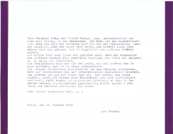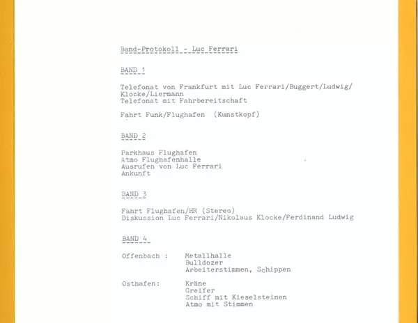3-6 | Luc Ferrari, Brunhild Meyer-Ferrari: Zur Gattung Hörspiel | 13:36 min | |