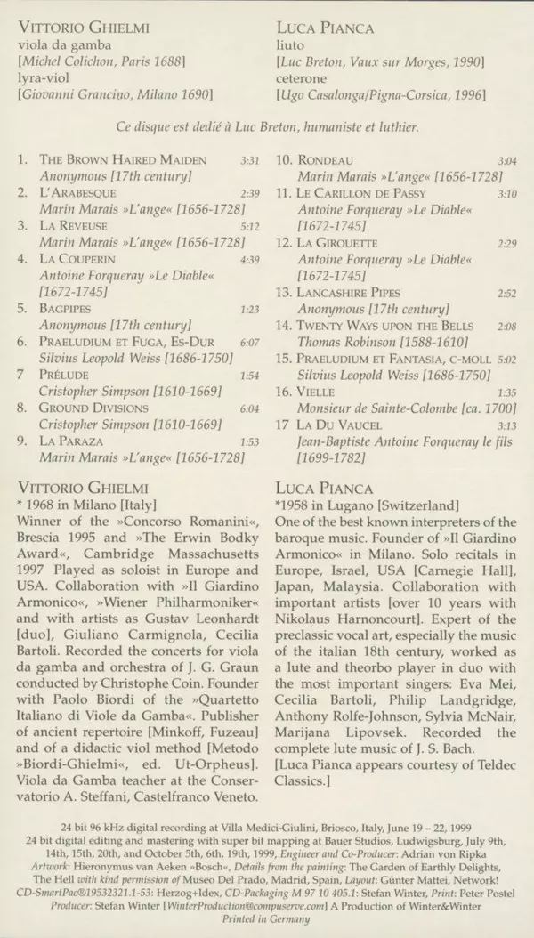 | Artista | Vittorio Ghielmi | Luca Pianca |