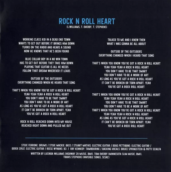 Backing Vocals Bruce Springsteen, Patti Scialfa | Bass Steve Mackey (3) | Drums Steve Ferrone | Electric Guitar Derek Cruz, Doug Pettibone, Stuart Mathis | Electric Organ [B3] Reese Wynans | Tambourine Ray Kennedy (2) | Written-By Lucinda Williams, Tom Overby, Travis Stephens