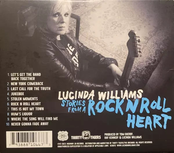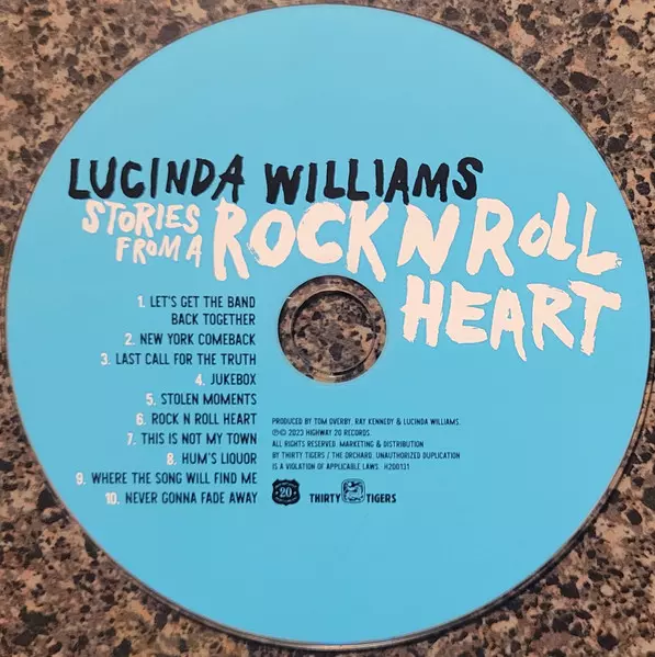 Lucinda Williams: Stories From A Rock N Roll Heart versión en CD en estándar edición. Esta edición en concreto se lanzó en EE.UU. en la editorial Highway 20 Records el día 30. junio 2023. Álbum abarca todos los géneros Rock y Blues.