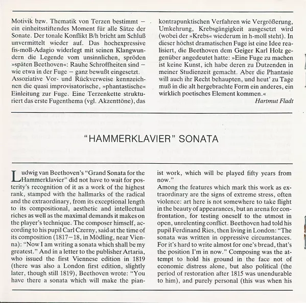 | Título | Hammerklavier-Sonate = Piano Sonata No.29 In B Flat Major = Sonate Pour Piano N° 29 En Si Bémol Majeur Op.106 |