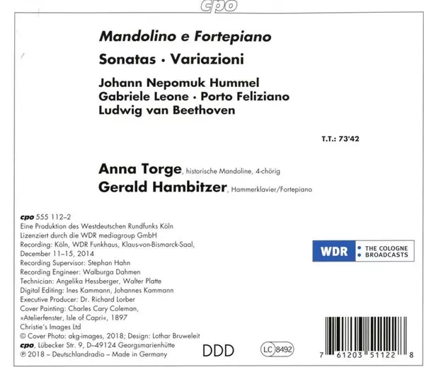 | Artista | Ludwig van Beethoven | Johann Nepomuk Hummel | Anna Torge | Gerald Hambitzer | Porto Feliziano |