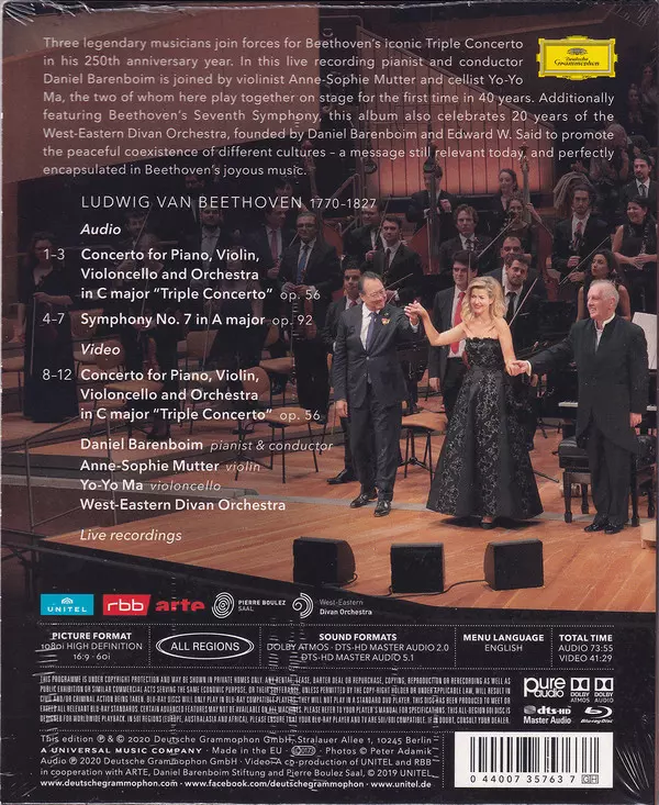 | Artista | Ludwig van Beethoven | Anne-Sophie Mutter | Yo-Yo Ma | Daniel Barenboim | West-Eastern Divan Orchestra |