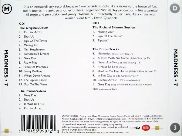 Madness: 7 versión en 2CD en remasterizado edición. Esta edición en concreto se lanzó en Reino Unido en la editorial Salvo en colaboración con Union Square Music el día 14. abril 2023.