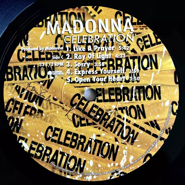 Madonna: Celebration versión en vinilo 4LP en remasterizado edición. Esta edición en concreto se lanzó en Mundo entero en la editorial Warner Records el día 1. marzo 2024.