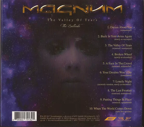 The Valley of Tears - The Ballads is a compilation album by British rock band Magnum. It was released on November 17, 2017 via Steamhammer/SPV. The album features ballads from the band's previous studio albums and two new tracks "The Valley of Tears" and "The Ballad of the Broken Hearted".