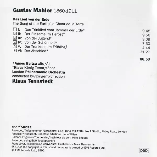 | Artista | Gustav Mahler | London Philharmonic Orchestra | Agnes Baltsa | Klaus Tennstedt | Klaus König |