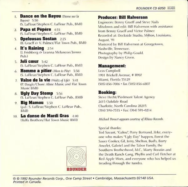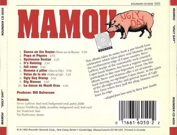 Mamou: Ugly Day versión en CD en estándar edición. Esta edición en concreto se lanzó en EE.UU. en la editorial Rounder Records el día 14. febrero 1992. Álbum abarca todos los géneros Folk, World, & Country y Cajun.