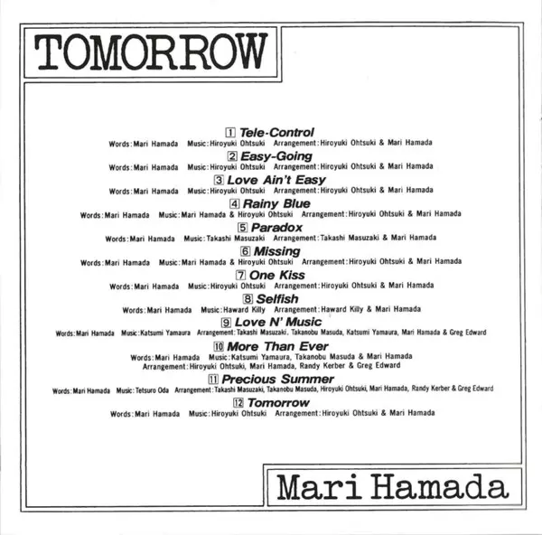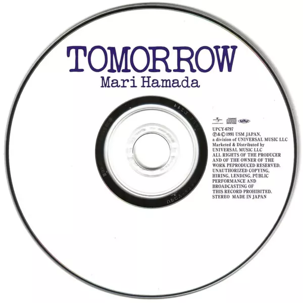 Mari Hamada: Tomorrow versión en CD en remasterizado edición. Esta edición en concreto se lanzó en Japón en la editorial Universal Music el día 15. enero 2014. Álbum abarca todos los géneros Rock, Pop, Pop Rock, J-Rock y AOR. Shm CD.