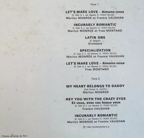 | Artista | Marilyn Monroe | Yves Montand | Frankie Vaughan |