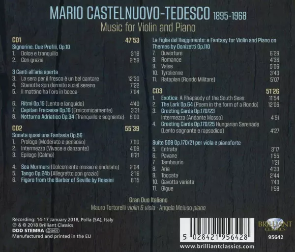 | Artista | Mario Castelnuovo Tedesco | Mauro Tortorelli | Angela Meluso | Gran Duo Italiano |