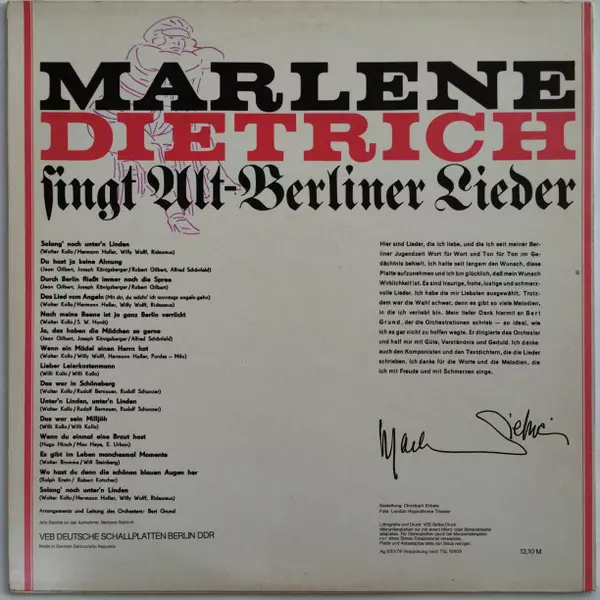 | Título | Marlene Dietrich Singt Alt-Berliner Lieder |