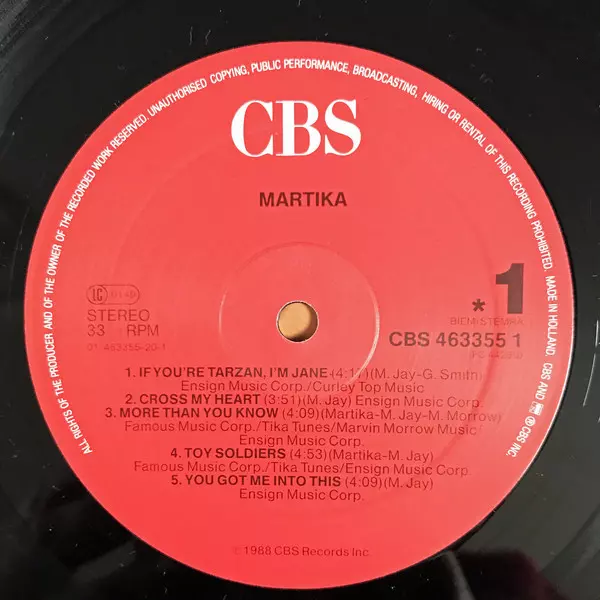 Martika: Martika versión en vinilo LP en estándar edición. Esta edición en concreto se lanzó en Europa en la editorial CBS el día 17. marzo 2016. Álbum abarca todos los géneros Rock, Música electrónica, Pop Rock, Synth-Pop y Hi NRG.