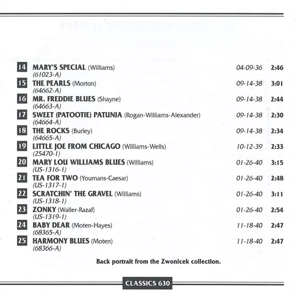 | 25 | Mary Lou Williams And Her Kansas City Seven: Harmony Blues | 3:04 min | |