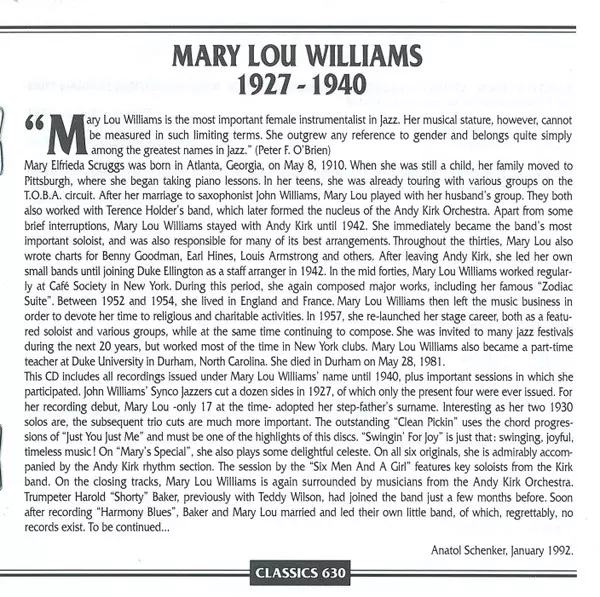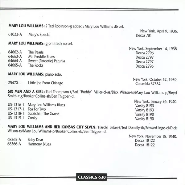 | Artista | Mary Lou Williams |
