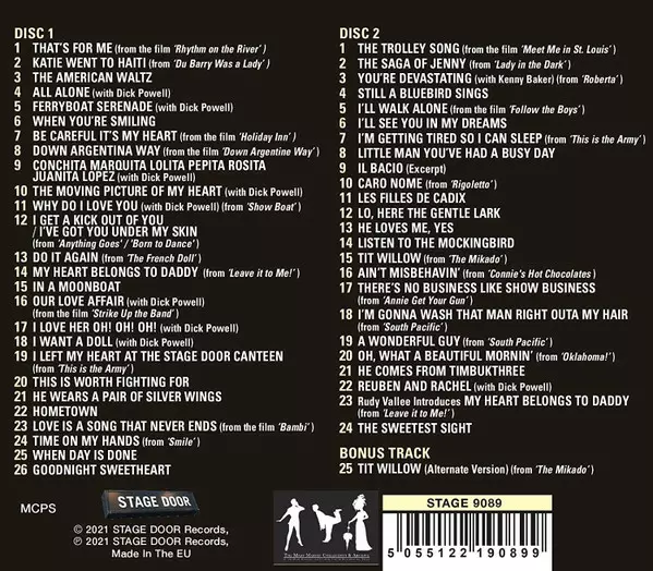 Mary Martin: On Air 1939-1950 versión en 2CD en estándar edición. Esta edición en concreto se lanzó en Reino Unido en la editorial Stage Door Records el día 21. enero 2022. Álbum abarca todos los géneros Pop y Escenario y pantalla.
