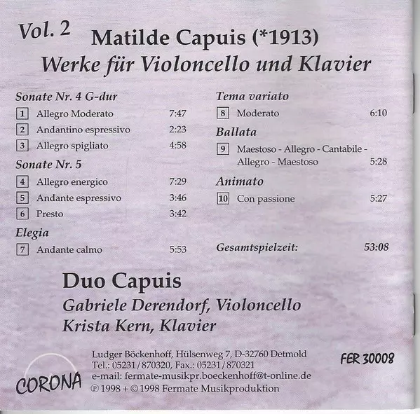 | Artista | Matilde Capuis | Duo Capuis | Gabriele Derendorf | Krista Kern |