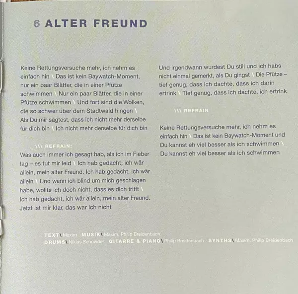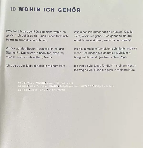 Bass Dominik Krämer | Drums Niklas Schneider | Guitar Philip Breidenbach | Music By Philip Breidenbach | Music By, Lyrics By Maxim (3) | Piano Philip Breidenbach | Synth Maxim (3)