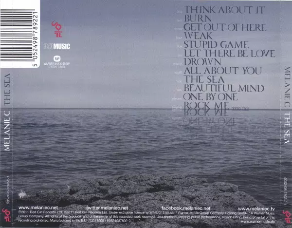 Melanie C: The Sea versión en CD en estándar edición. Esta edición en concreto se lanzó en Europa en la editorial Red Girl Records en colaboración con 313 Music el día 2. septiembre 2011. Álbum abarca todos los géneros Pop Rock, Dance-pop, Electropop y Adult Contemporary.