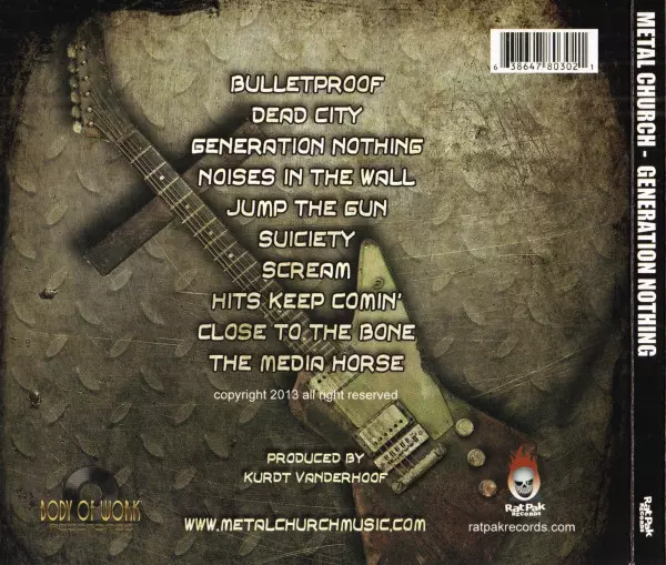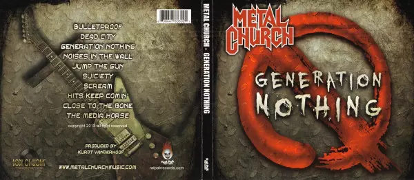 Metal Church is a thrash metal band from San Francisco, California, formed in 1984. The original lineup consisted of vocalist David Wayne, guitarist Kurdt Vanderhoof, bassist Duke Erickson and drummer Kirk Arrington. Generation Nothing is the band's eleventh studio album, released on October 22, 2013. The album was produced by Vanderhoof and mix...
