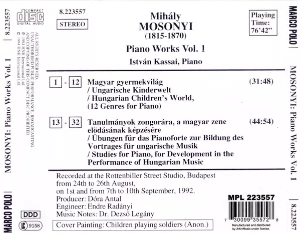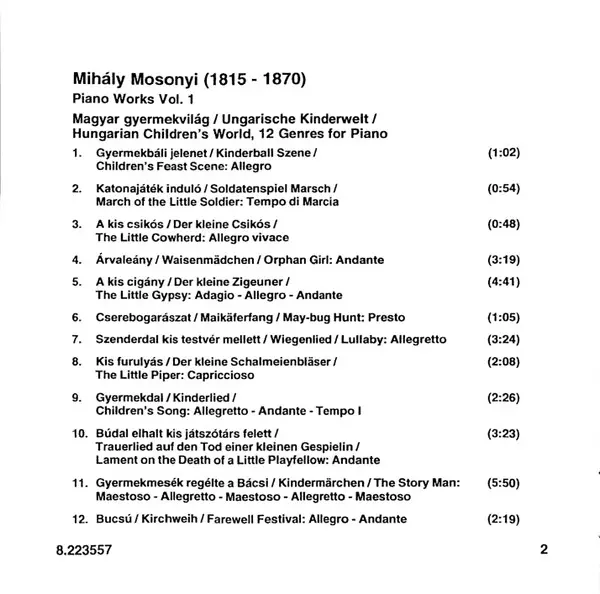 | Magyar Gyermekvilág / Ungarische Kinderwelt / Hungarian Children's World, (12 Genres For Piano) | 31:48 min | |