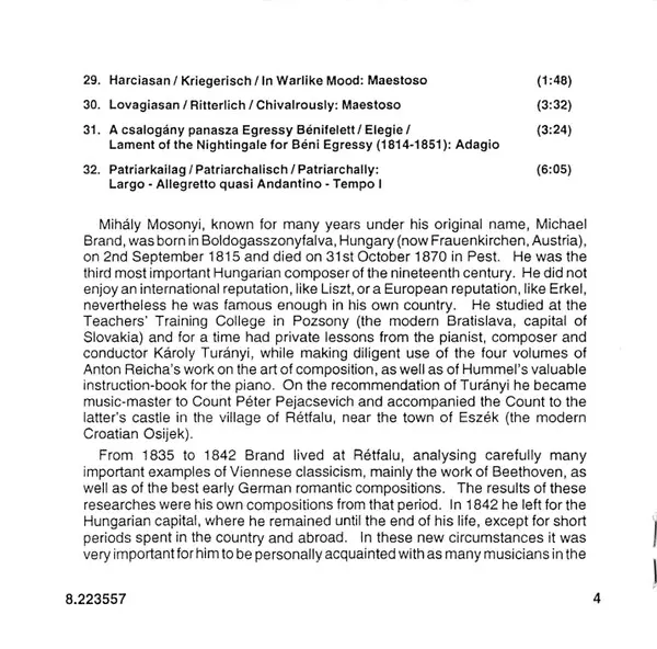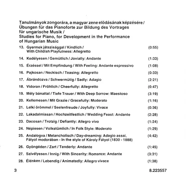 | Tanulmányok Zongorára, A Magyar Zene Elödásának Képzésére / Übungen Für Das Pianoforte Zur Bildung Des Vortrages Für Ungarische | 44:54 min |