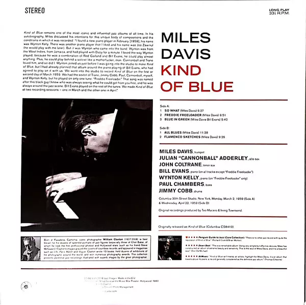 So much has been said and written about Miles Davis' "Kind Of Blue" that it is virtually impossible to summarize all the necessary information in the scope of these essays. We could simply state a few facts (the best-selling jazz album of all time in the world). We could try to explain why it is the best jazz album of all time, but the music wil...