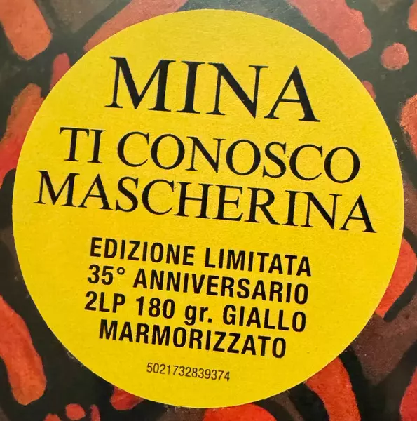 Mina: Ti Conosco Mascherina CLR | LTD | NUM versión en vinilo 2LP en en color de edición limitada numerados individualmente edición. Esta edición en concreto se lanzó en Italia en la editorial Warner Music Italy el día 17. octubre 2025. Álbum abarca todos los géneros Pop, Vocal, Balad y Europop.