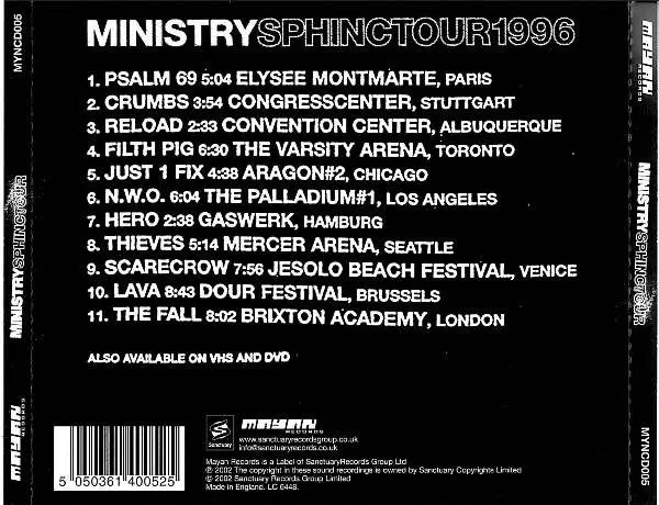 Ministry The album Sphinctour was released in 2002 and included songs such as "N.W.O.", "Just One Fix" and "Thieves". The album was a blend of industrial metal and alternative rock and was commercially successful, reaching number 16 on the Billboard 200 chart. The album was well received by critics and was nominated for a Grammy Award for Best M...