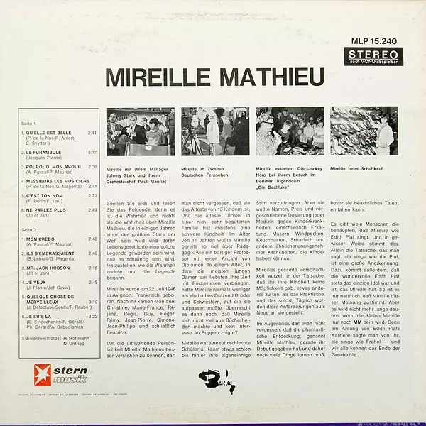 | Artista | Mireille Mathieu |