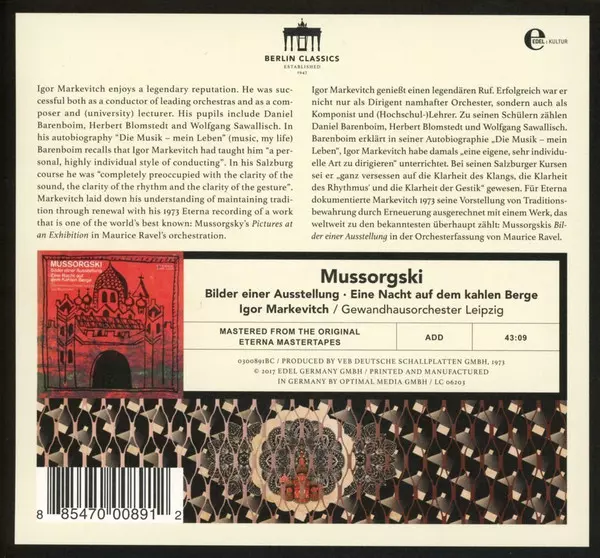 | Título | Bilder Einer Ausstellung / Eine Nacht Auf Dem Kahlen Berge |