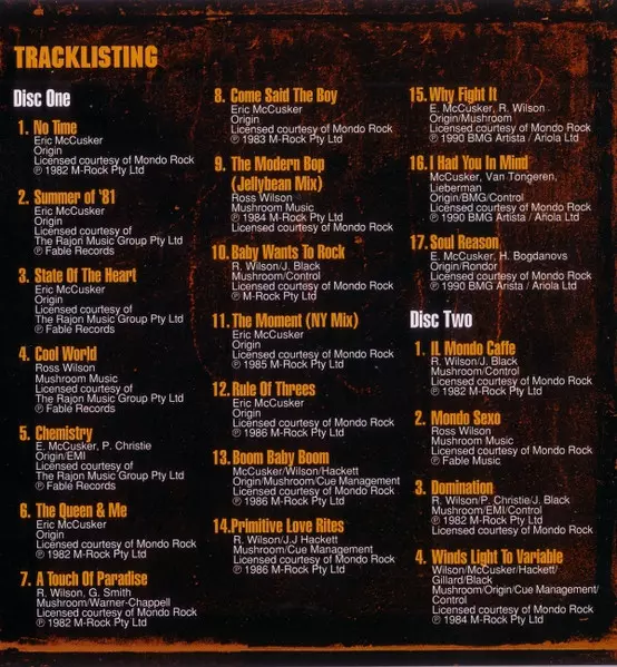 | Artista | Mondo Rock |
