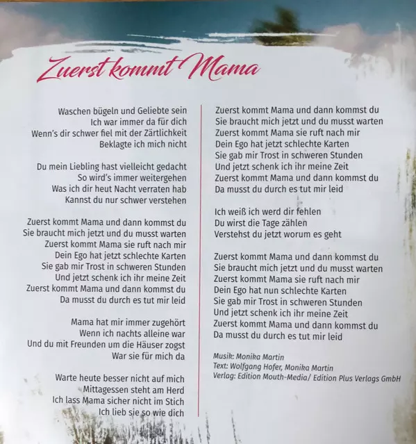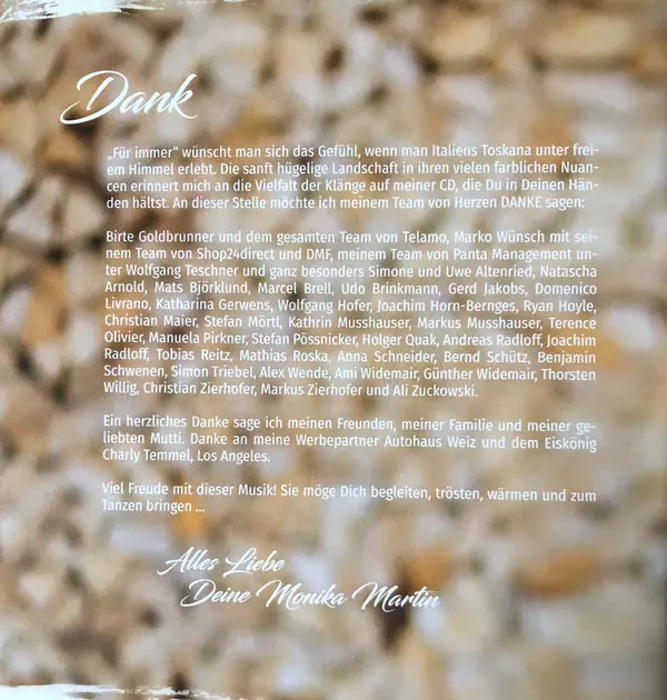 Arranged By Alex Wende, Stefan Pössnicker | Guitar Mats Björklund | Keyboards [Additional] Christian Maier (2) | Lyrics By Wolfgang Hofer | Music By, Lyrics By Monika Martin | Producer Monika Martin