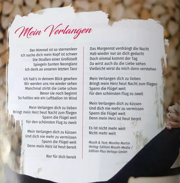 Arranged By Domenico Livrano, Gerd Jakobs, Thorsten Willig | Drums Stefan Mörtl | Guitar Holger Quak | Keyboards [Additional] Christian Maier (2), Christian Zierhofer, Markus Musshauser | Lyrics By Joachim Horn-Bernges | Music By Monika Martin | Producer GEDO, Monika Martin