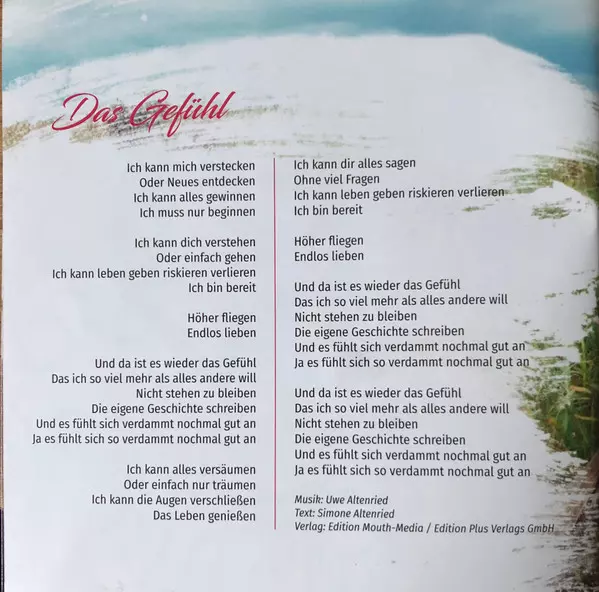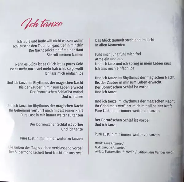 Arranged By Andreas Radloff, Stefan Pössnicker | Guitar Mats Björklund | Keyboards [Additional] Christian Maier (2), Christian Zierhofer | Lyrics By Simone Altenried | Music By Uwe Altenried | Producer Monika Martin