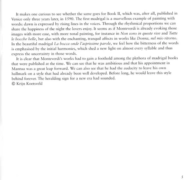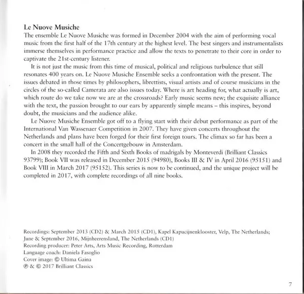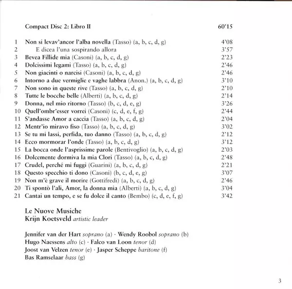 | Artista | Claudio Monteverdi | Krijn Koetsveld | Le Nuove Musiche |